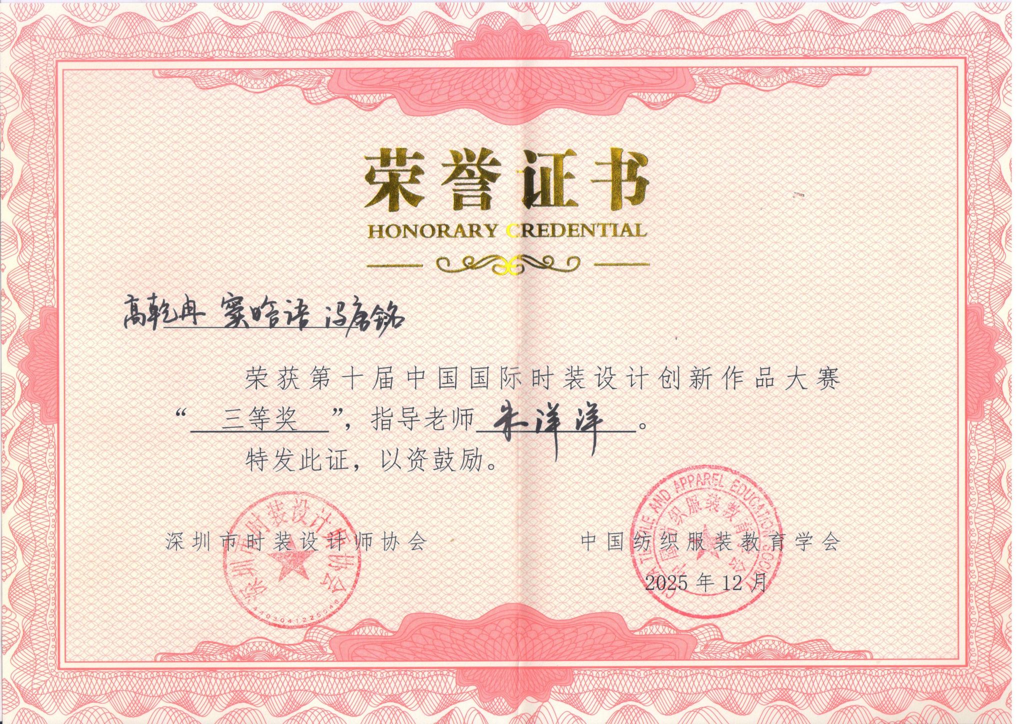 此次佳绩的取得,是服装学院以赛促学、以赛促教、以赛促创育人模式的成果体现。未来,服装学院将以此为契机,持续优化人才培养体系,搭建更多优质的实践创新平台,着力培养兼具创新精神与文化自信的时尚设计人才,为我国纺织服装产业高质量发展与中华优秀传统文化传承创新贡献力量。