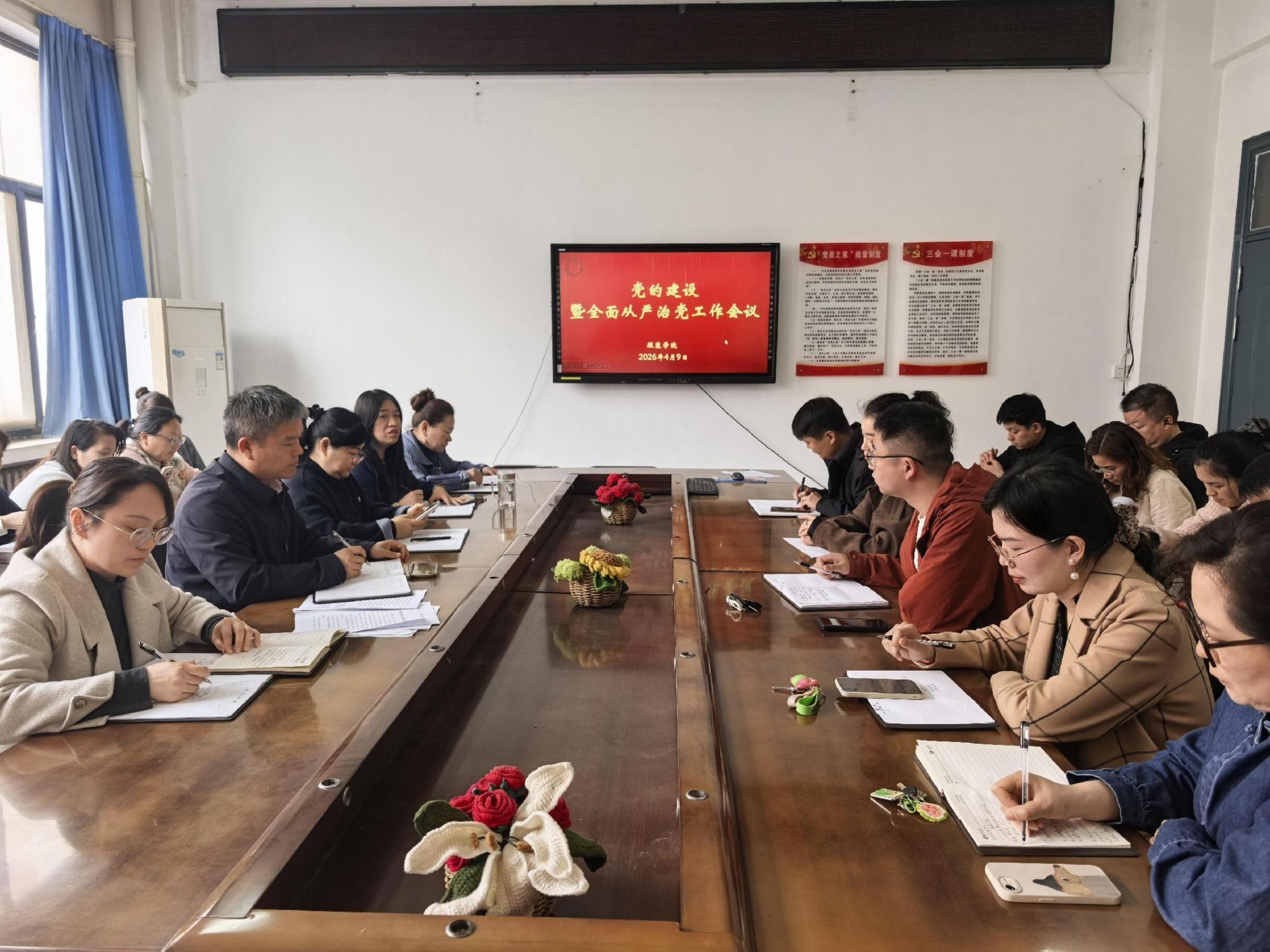 4月9日,服装学院在11号楼204会议室召开全面从严治党工作会议,学院班子成员、党支部书记和全体党员参加会议。会议由学院党委书记游红伟主持。